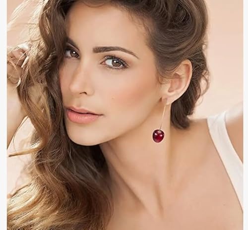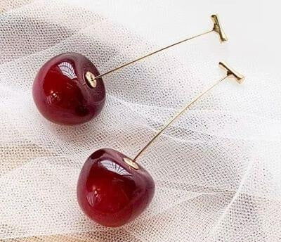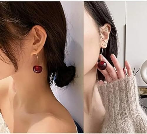 Cherry Red Edgy Beach Hanging Earrings | Stylish Classy Contemporary Detachable Gold Danglers | Celebrity Inspired, Modern Korean Fashion Jewellery