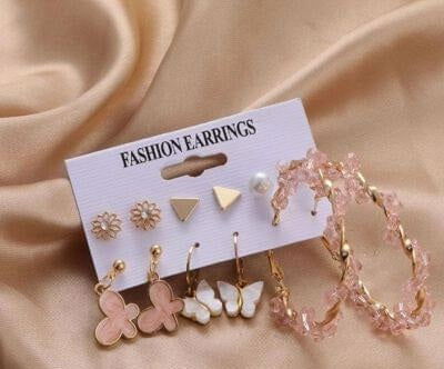 Combo of 6 Pair Gold Plated Flower Hoop Earrings For Women Alloy Hoop Earring, Stud Earring