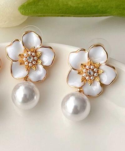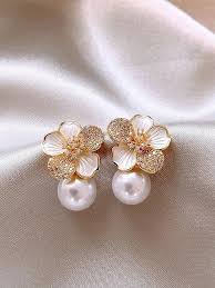 Flower Pearl Earring Earrings For Women Girls Korean Earring Western Fashion Earring Light Shiny Party Casual Trendy Stylish Fancy
