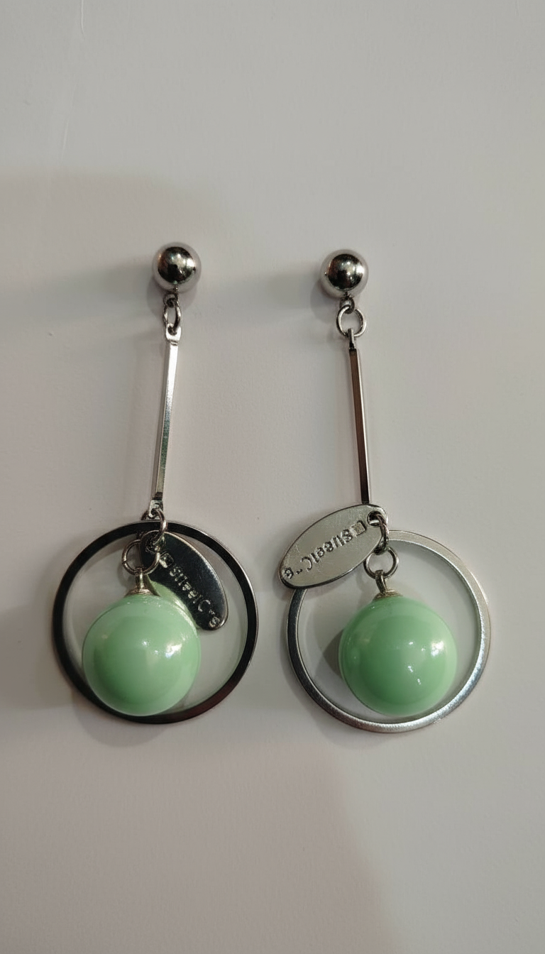 These green round shell pearl drop earrings feature elegant hooks for comfortable wear. Their lustrous pearls enhance any outfit with a touch of sophistication and natural beauty. Perfect for formal occasions or adding a refined accent to everyday style, these earrings offer a timeless accessory crafted to complement diverse looks.