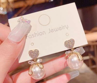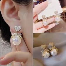 Korean Fashion Love Bow Pearl Set Metal Stud Earring